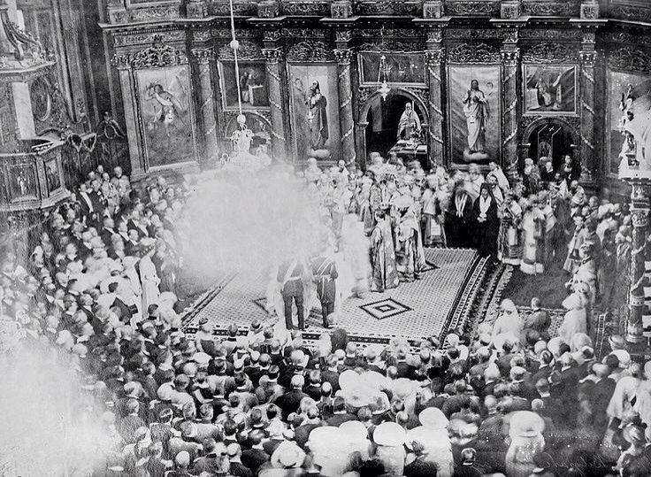 Unutrašnjost crkve bila je okićena belim platnima, zlatnim trakama i svećama koje su odražavale svetlost na licima zvanica.