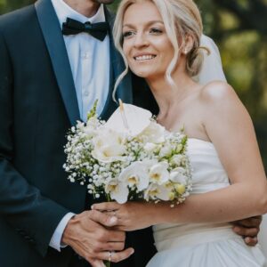 Bidermajer sa ružama, lizijantusom, šlajerom, eukaliptusom…