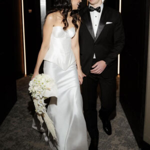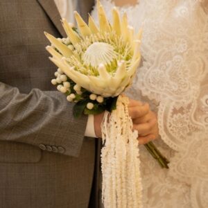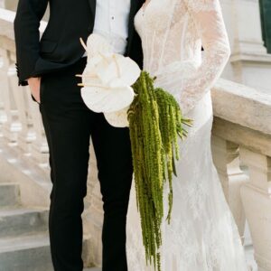 Bidermajer sa pampas travom, ružama, lizijantusom, šlajerom, orhidejama i anturijumom.